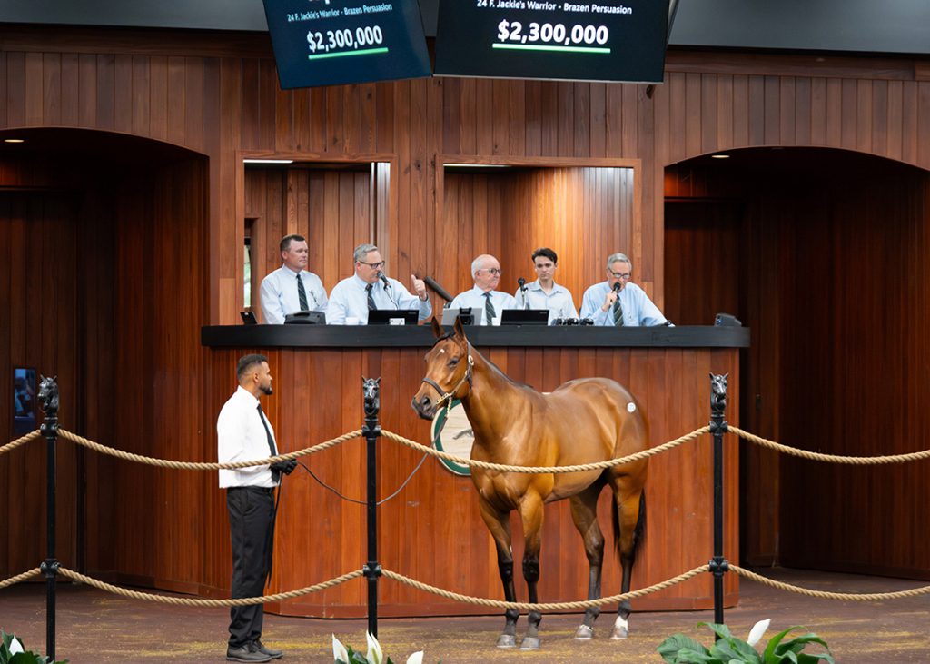 by Jessica Martini and Stefanie Grimm A filly from the first crop of Jackie's Warrior became the second highest-priced juvenile to ever sell at the Ocala Breeders' Sales Company's Spring 2-Year-Olds in Training Sale when she brought a final bid…